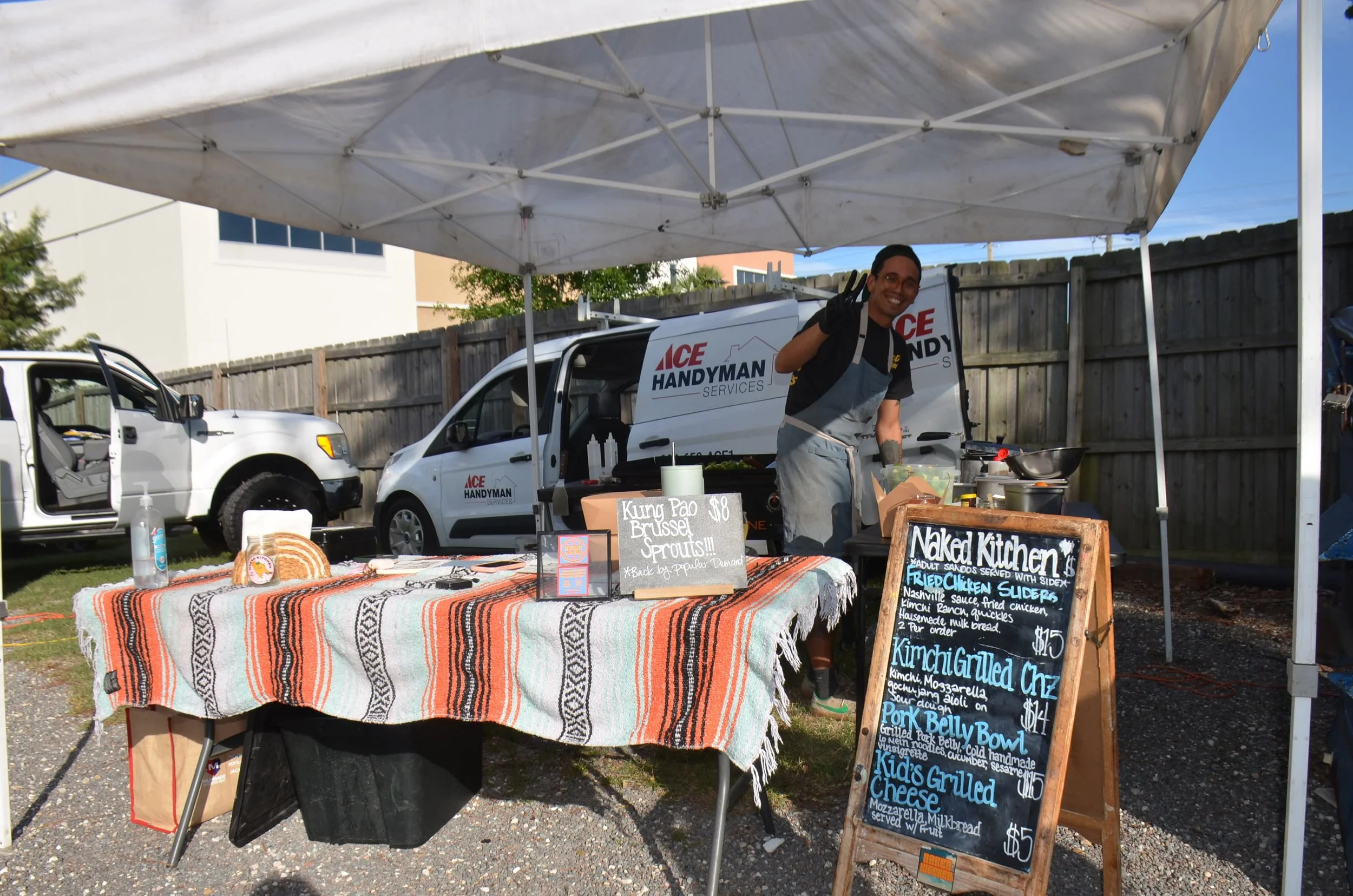 Pop-up food vendor serving a delicious variety of meals including their famous kimchi grilled cheese and kung pao brussel sprouts!